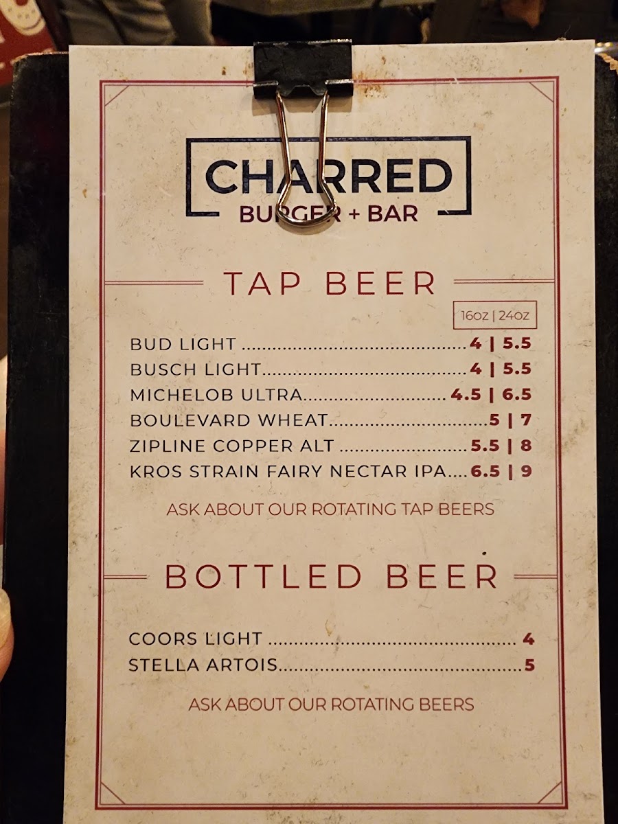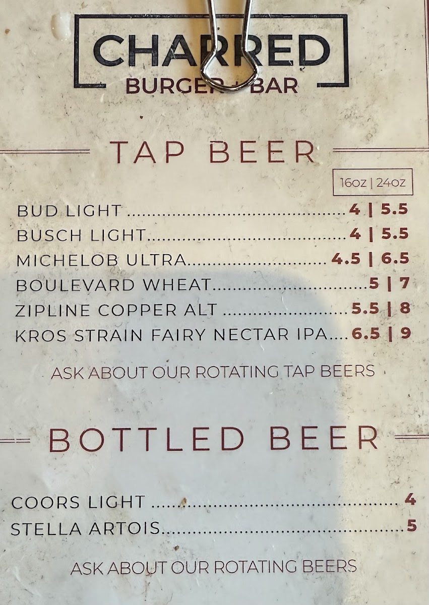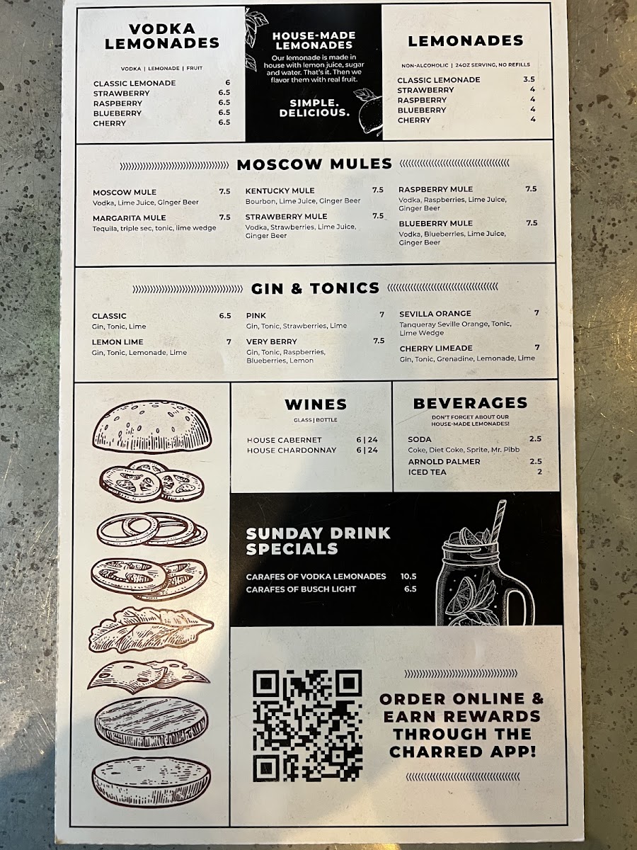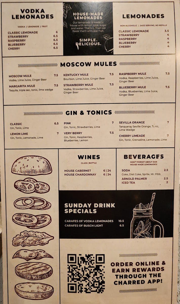 Charred Burger + Bar Menu