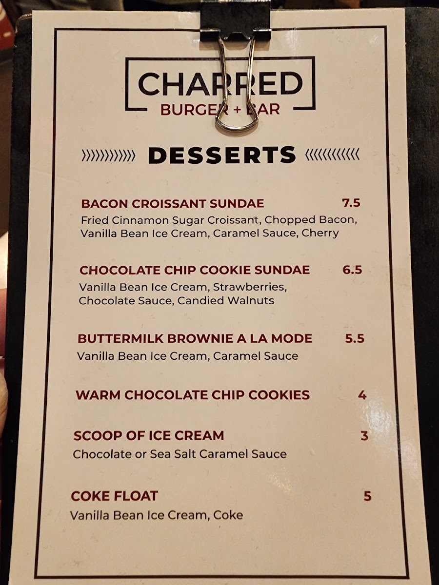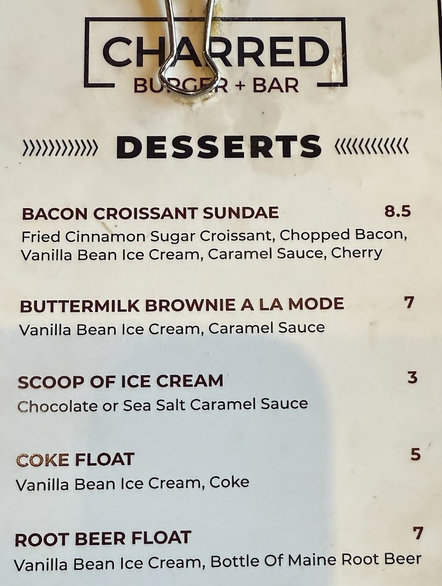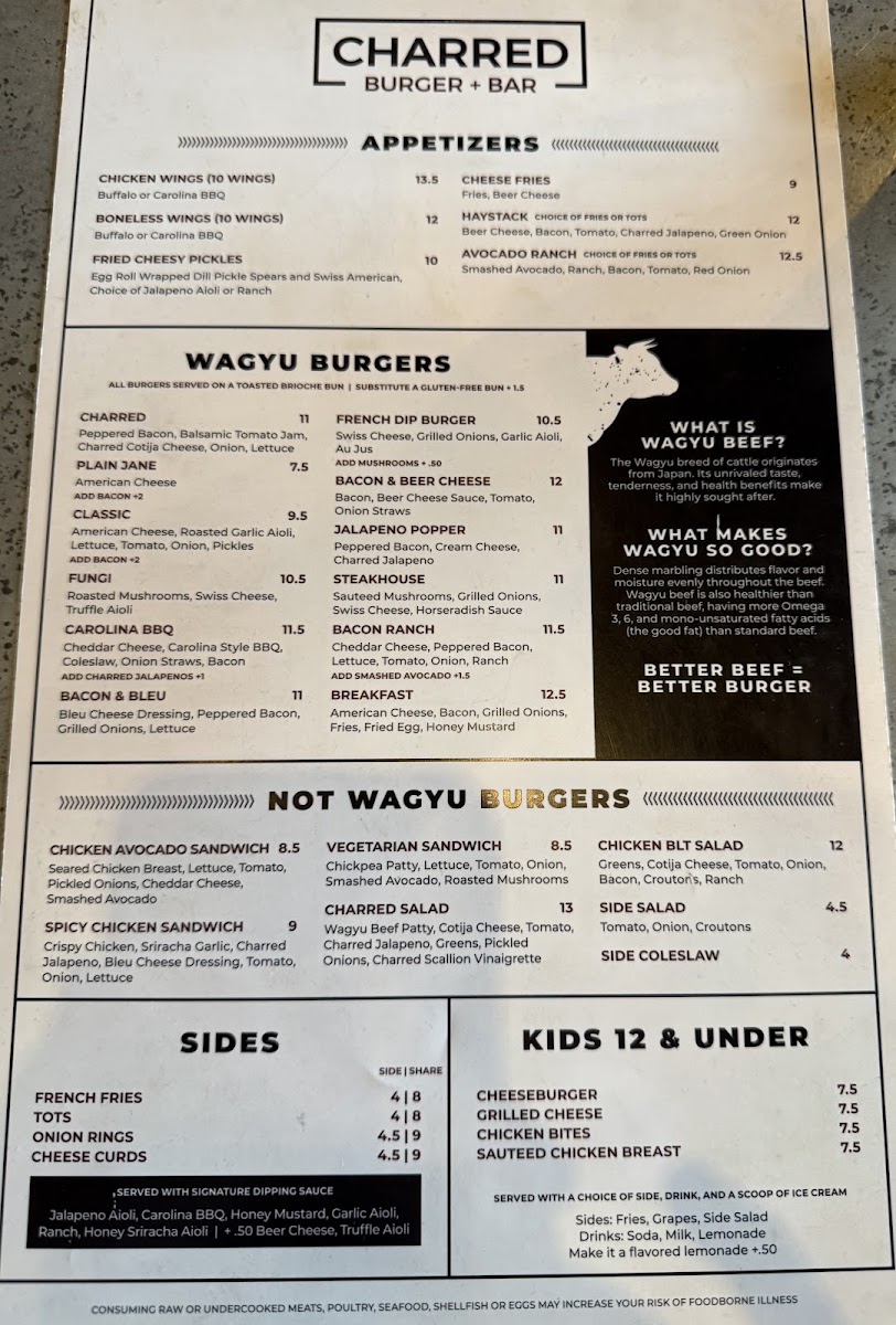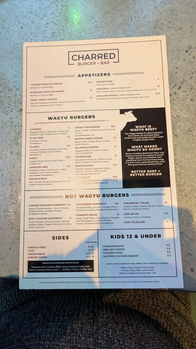 Charred Burger + Bar Menu